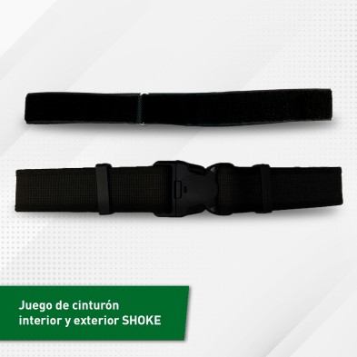 Set de cinturón exterior e interior de SHOKE, un modelo fabricado en cordura de alta resistencia con laterales rígidos para evitar dobleces, vaivenes o caídas del equipamiento.
